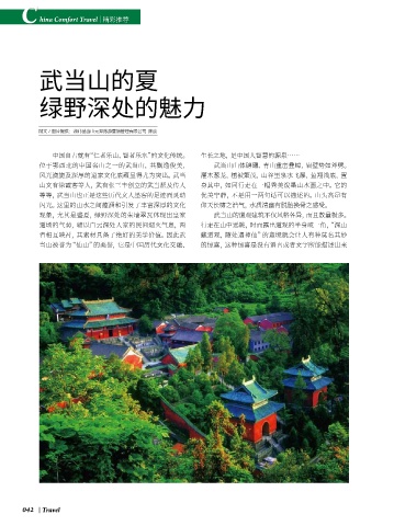 现象,尤其是盛夏,绿野深处的朱墙翠瓦体现出皇家 武当山的道观建筑不仅风格各异,而且数量极多。