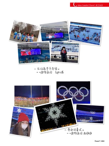 C hina Comfort Travel 员工风采 《见证高亭宇夺冠》 ——康辉集团 赵虹茹 《亲历闭幕式》 ——康辉集团 尚铮铮 Travel 065