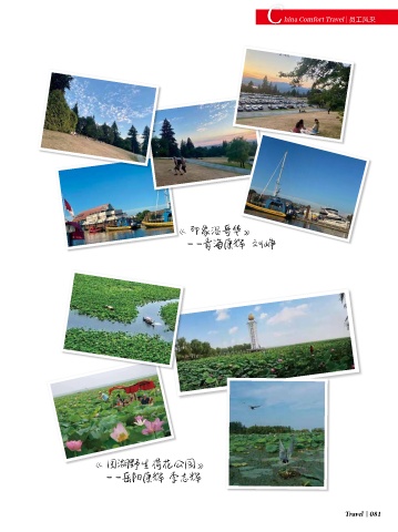 C hina Comfort Travel 员工风采 《印象温哥华》 ——青海康辉 刘峥 《 团湖野生荷花公园》 ——岳阳康辉 李志辉 Travel 081