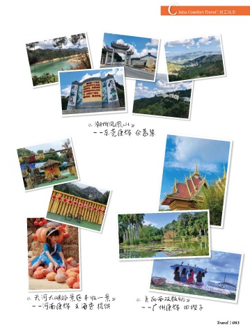 C hina Comfort Travel 员工风采 《 潮州凤凰山》 ——东莞康辉 余慕慧 《 天河大峡谷景区丰收一景》 《 美丽西双版纳》 ——河南康辉 王海秀 提供 ——广州康辉 田樱子 Travel 083