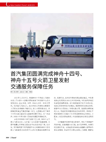 人员的无私奉献和辛勤付出。助力火箭发射成功,首 旅游车分公司制定了详细实施方案,选派政治素质高