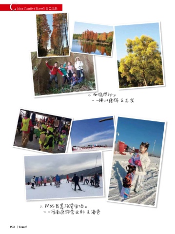 C hina Comfort Travel 员工风采 《 西樵探秘》 ——佛山康辉 王志文 《 探路者嵩顶滑雪场》 ——河南康辉营业部 王海秀 078 Travel