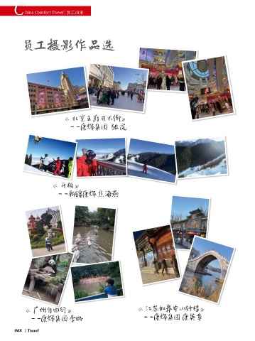 C hina Comfort Travel 员工风采 《 北京王府井大街》 ——康辉集团 张 岚 《 开板》 ——新疆康辉 焦海燕 《广州自由行》 《江苏如皋中山钟楼》 ——康辉集团 李璐 ——康辉集团 康英章 068 Travel