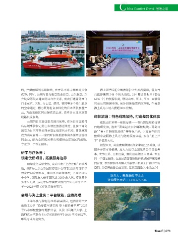 优势。同时,公司与青岛航空及全日空、山东航空、东 岛旅游集团 348 个码头泊位、214 艘运营船只(客位