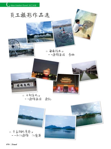 C hina Comfort Travel 员工风采 《 海南陵水》 ——康辉集团 李璐 《 开封采风》 ——康辉集团 康凯 《 千岛湖风景区》 ——九江康辉 江爱英 076 Travel